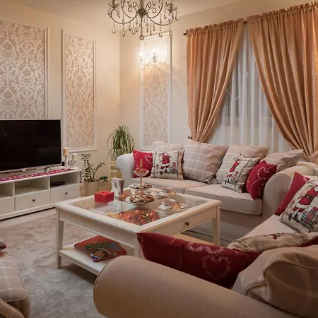 Villa Sunset Lady je smještena otprilike 10 minuta vožnje od Crkve Porodenja Blažene Djevice Marije i nudi smještaj s terasom za sunčanje, aqua parkom i sezonskim vanjskim bazenom. S pogledom na more, sobe objekta opremljene su TV-om, susjednom terasom i balkonom.