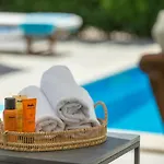 Erkély, étkező és öltöző elérhető a vendégek kényelme érdekében. Tengerre néző kilátást biztosít, továbbá egy hűtővel, sütővel és üvegáruval ellátott teljesen felszerelt konyhát. Fürdőkád és zuhanyzó, ezenkívül hajszárító, szárító és törölközők biztosított.